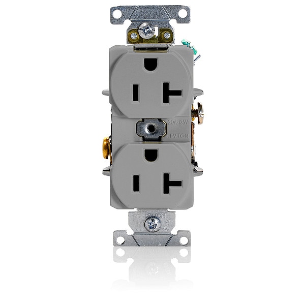 Receptacle, Connection Orientation Straight, Cover Type No Cover, Current Rating 20 A, GFCI No, Grounding Grounded, Hazardous Location Specification Not Applicable, Housing Color Gray, Housing Material Nylon, Mount Type Flush, NEMA Enclosure Rating Not Rated, NEMA Receptacle Configuration 5-20R, Number of Gangs 1, Number of Poles 2, Number of Wires 3, Phase Single, Polarized Yes, Receptacle Type Duplex, Resistance Properties Not Applicable