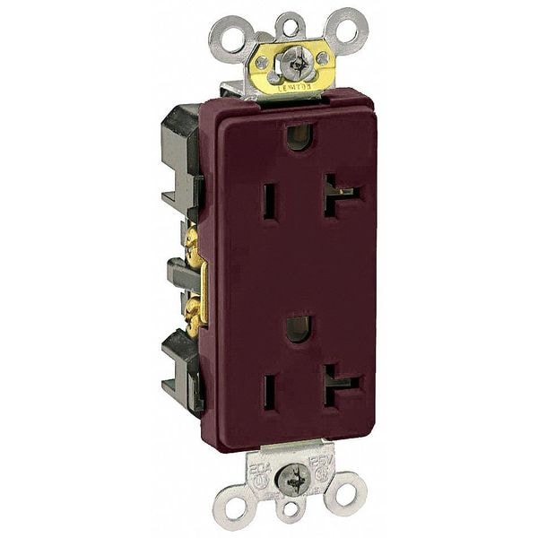 Receptacle, Connection Orientation Straight, Cover Type No Cover, Current Rating 20 A, GFCI No, Grounding Grounded, Hazardous Location Specification Not Applicable, Housing Color Brown, Housing Material Thermoplastic, Mount Type Flush, NEMA Enclosure Rating Not Rated, NEMA Receptacle Configuration 5-20R, Number of Poles 2, Number of Wires 3, Phase Single, Polarized Yes, Receptacle Type Decorator Duplex, Resistance Properties Not Applicable