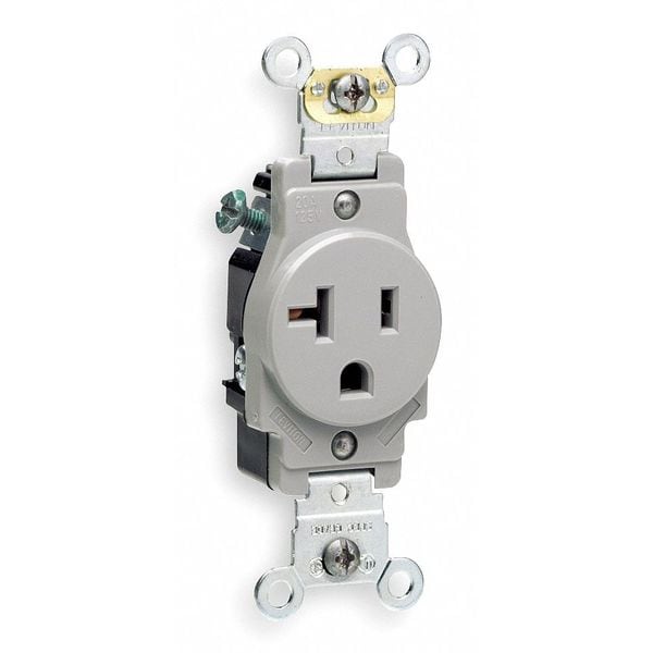 Straight Blade Receptacle, 5-20R, 20 A, 125V AC, 2 Pole, 3 Wire, Flush Mount, Single, Gray