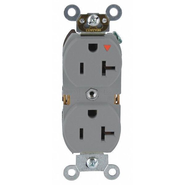 Straight Blade Receptacle, 5-20R, 20 A, 125V AC, 2 Pole, 3 Wire, Flush Mount, Single, Gray