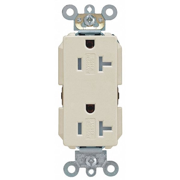 Receptacle, Connection Orientation Straight, Cover Type No Cover, Current Rating 20 A, GFCI No, Grounding Grounded, Hazardous Location Specification Not Applicable, Housing Color Ivory, Housing Material Thermoplastic, Mount Type Flush, NEMA Enclosure Rating Not Rated, NEMA Receptacle Configuration 5-20R, Number of Poles 2, Number of Wires 3, Phase Single, Polarized Yes, Receptacle Type Decorator Duplex, Resistance Properties Not Applicable