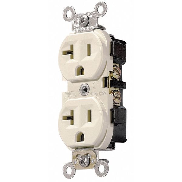 Receptacle, Connection Orientation Straight, Cover Type No Cover, Current Rating 20 A, GFCI No, Grounding Grounded, Hazardous Location Specification Not Applicable, Housing Color Ivory, Housing Material Thermoplastic, Mount Type Flush, NEMA Enclosure Rating Not Rated, NEMA Receptacle Configuration 5-20R, Number of Poles 2, Number of Wires 3, Phase Single, Polarized Yes, Receptacle Type Duplex, Resistance Properties Not Applicable