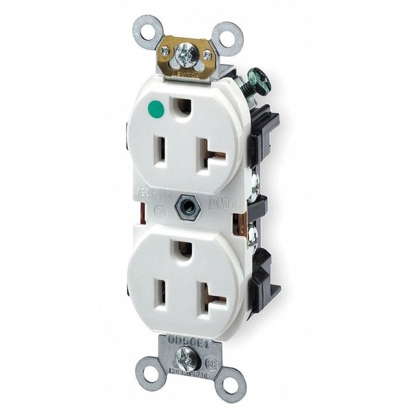 Receptacle, Connection Orientation Straight, Cover Type No Cover, Current Rating 20 A, GFCI No, Grounding Grounded, Hazardous Location Specification Not Applicable, Housing Color White, Housing Material Nylon, Mount Type Flush, NEMA Enclosure Rating Not Rated, NEMA Receptacle Configuration 5-20R, Number of Poles 2, Number of Wires 3, Phase Single, Polarized Yes, Receptacle Type Duplex, Resistance Properties Not Applicable