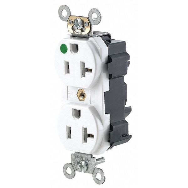 Receptacle, Connection Orientation Straight, Cover Type No Cover, Current Rating 20 A, GFCI No, Grounding Grounded, Hazardous Location Specification Not Applicable, Housing Color White, Housing Material Nylon, Mount Type Flush, NEMA Enclosure Rating Not Rated, NEMA Receptacle Configuration 5-20R, Number of Poles 2, Number of Wires 3, Phase Single, Polarized Yes, Receptacle Type Duplex, Resistance Properties Not Applicable