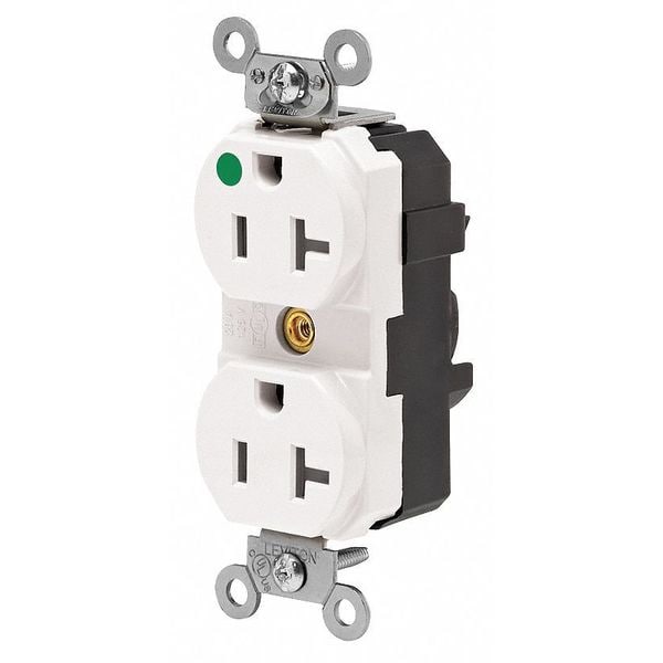 Receptacle, Connection Orientation Straight, Cover Type No Cover, Current Rating 20 A, GFCI No, Grounding Grounded, Hazardous Location Specification Not Applicable, Housing Color White, Housing Material Nylon, Mount Type Flush, NEMA Enclosure Rating Not Rated, NEMA Receptacle Configuration 5-20R, Number of Poles 2, Number of Wires 3, Phase Single, Polarized Yes, Receptacle Type Duplex, Resistance Properties Not Applicable