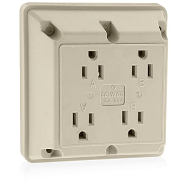 Receptacle, Connection Orientation Straight, Cover Type No Cover, Current Rating 20 A, GFCI No, Grounding Grounded, Hazardous Location Specification Not Applicable, Housing Color Ivory, Housing Material Nylon, Mount Type Surface, NEMA Enclosure Rating Not Rated, NEMA Receptacle Configuration 5-20R, Number of Poles 2, Number of Wires 3, Phase Single, Polarized Yes, Receptacle Type Quad, Resistance Properties Not Applicable