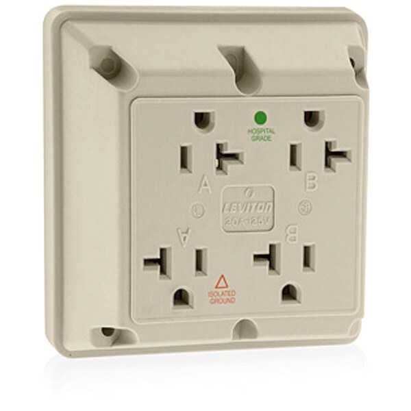 Receptacle, Connection Orientation Straight, Cover Type No Cover, Current Rating 20 A, GFCI No, Grounding Isolated Ground, Hazardous Location Specification Not Applicable, Housing Color Ivory, Housing Material Nylon, Mount Type Flush, NEMA Enclosure Rating Not Rated, NEMA Receptacle Configuration 5-20R, Number of Gangs 2, Number of Poles 2, Number of Wires 3, Phase Single, Polarized Yes, Receptacle Type Quad, Resistance Properties Not Applicable