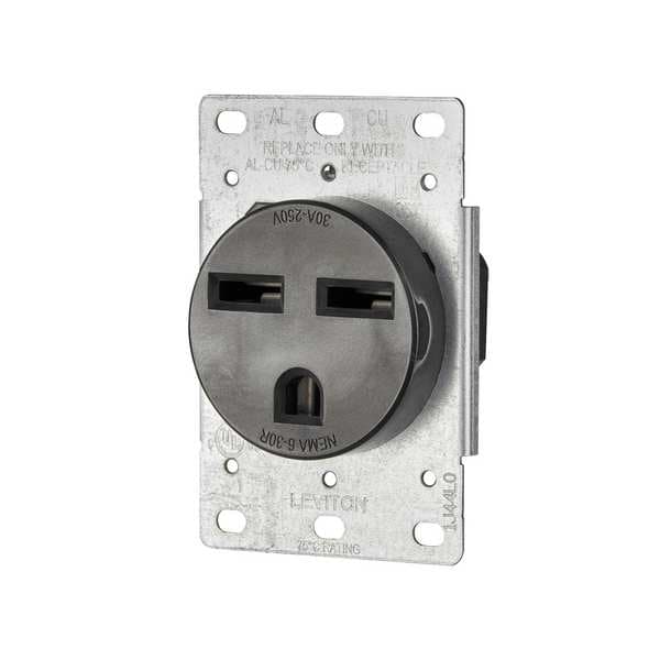 Receptacle, Connection Orientation Straight, Cover Type No Cover, Current Rating 30 A, GFCI No, Grounding Grounded, Housing Color Black, Housing Material Thermoplastic, Mount Type Flush, NEMA Receptacle Configuration 6-30R, Number of Poles 2, Number of Wires 3, Phase Single, Polarized Yes, Receptacle Type Single, Standards ANSI C73, C22.2 No. 14, C22.2 No. 65, File E13399, CSA C22.2 No. 42, NEMA WD-6, UL 486E, UL 498, Voltage Rating 250V AC, Wire Connection Type Screw Terminals