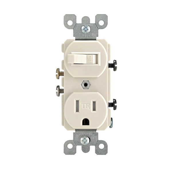Tamper Resistant, Duplex Style Single-Pole/5-15R AC Combination Switch, 15 Amp, 120 Volt, Light Almond