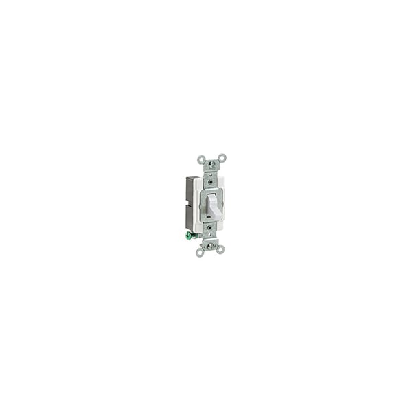 20 Amp, 120/277 Volt, Toggle Single-Pole AC Quiet Switch, Commercial Spec Grade, Grounding, Side Wired, - White