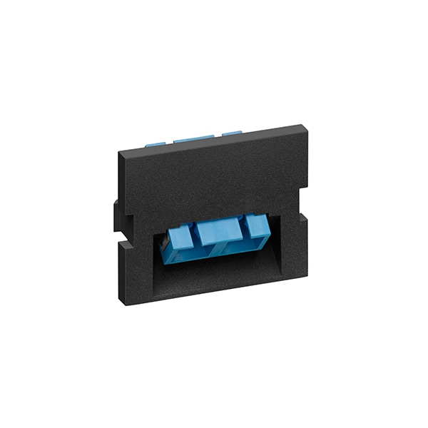 MOS Insert, Duplex SC Fiber Adapter with Zirconia Ceramic Sleeve, 45° exit, 1.5 units high, black. For use with Single-Mode and Multi-Mode fiber.
