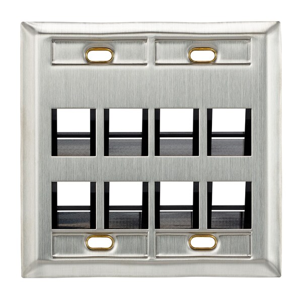 8-Port Angeled Quickport Wallplate with ID Windows, Dual-Gang, Stainless Steel