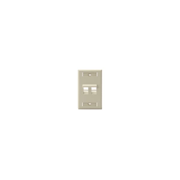 Angled QuickPort Wallplate with ID Window, 2-port, single gang, ivory.