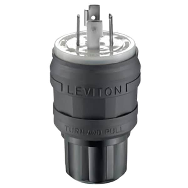 Watertight Locking Plug, Connection Orientation Straight, Current Rating 20 A, Housing Color Black, Housing Material Santoprene TPV, NEMA Plug Configuration L15-20P, Number of Blades 4, Number of Poles 3, Phase Three, Polarized Yes, Resistance Properties Watertight, Voltage Rating 250V AC, Wire Connection Type Screw Terminals, Wiring Style Standard, Face Diameter 2.06 in, For Maximum Cable Diameter 0.875 in, For Minimum Cable Diameter 0.375 in, Grade General Use, Grounding Grounded