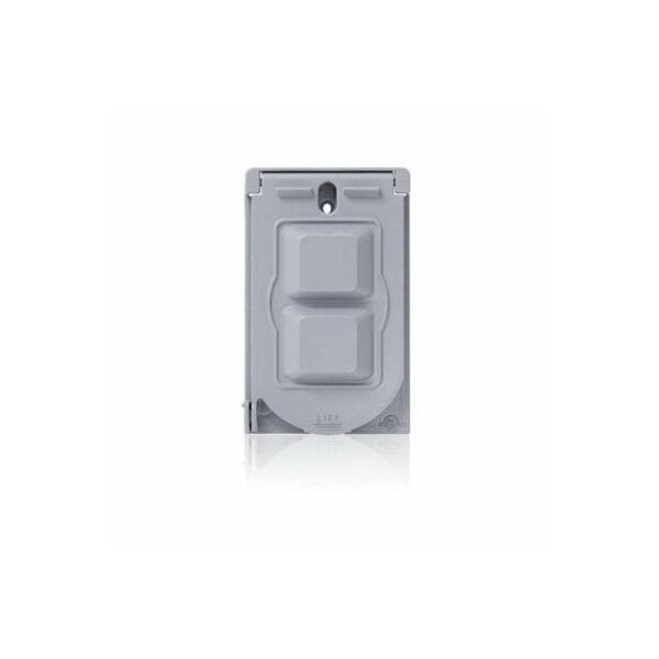 1-Gang Vertical Mount Weatherproof Cover for GFCI, Single Receptacle or Duplex Receptacle, Metallic Enclosure, Flat Lid, Includes inserts for GFCI, Single Receptacle and Duplex Receptacle Installations, Weatherproof Cover, Weatherproof Gasket and Mounting Screws, 2-Year Limited Warranty - Gray