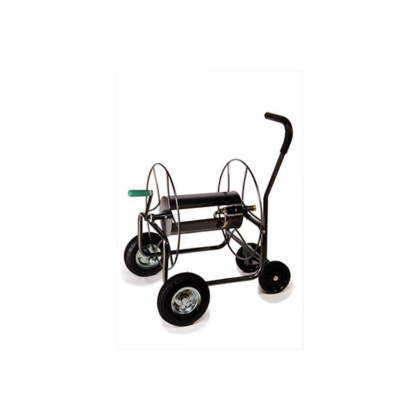 Yard Tree 4 Wheel Hose Truck Made From Heavy Duty Powder Coated Steel Has 2 Pneumatic Real Tires & 2 Solid Rubber Front Turning Tires Holds Up To 400 Of 5/8 Heavy Hose Brass Connectors 5 Leader Hose Conveniently Transports Hose To Any Location.