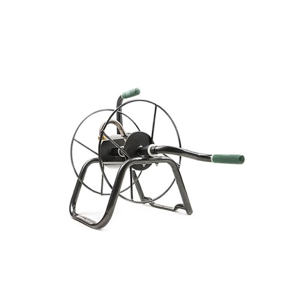 Yard Butler Silver/Black Handy Hose Reel Provides A Tidy Method For Safely Storing Up To 5/8 x 75 Hose Without Kinks Or Tangles Can Be Wall Mounted Or Used On The Ground For Maximum Portability All Steel Construction With A Powder Coat Finish That Will Stand Up To Years Of Outdoor Use Includes Leader Hose.