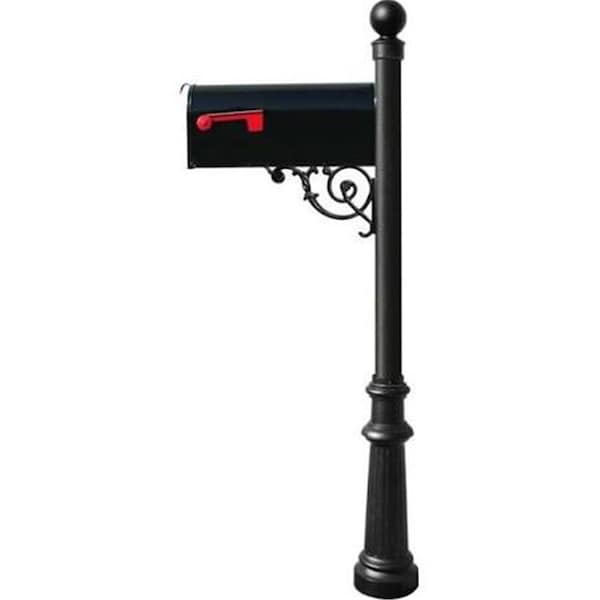 E1 Economy Mailbox System with Fluted Base & Ball Finial, Black