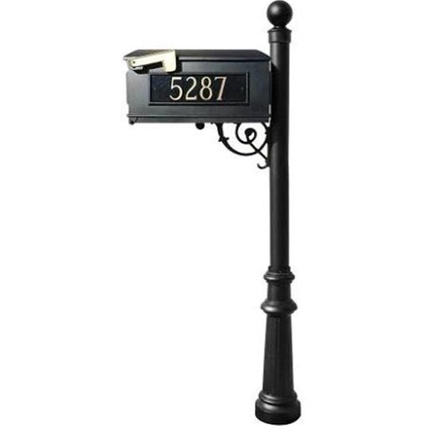Mailbox Post System with Fluted Base & Ball Finial & 3 Cast Plates Black
