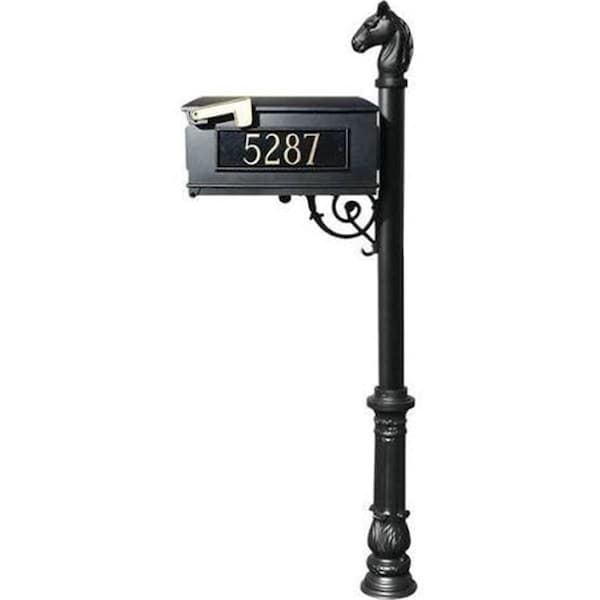Mailbox Post System with Ornate Base & Horsehead Finial & 3 Cast Plates Black