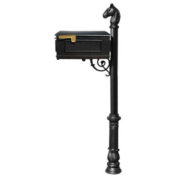 Mailbox System with Post Ornate Base & Horsehead Finial, Black