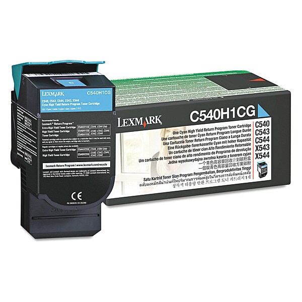 Market Indicator Cartridge No. C540H1CG, Ink/Toner Color Cyan, Printer Brand Lexmark, Printer Series None, Printer Model C540N, C543DN, C544DN, C544DTN, C544DW, C544N, C546DTN, X543DN, X544DN, X544DTN, X544DW, X544N, X546DTN, Max. Page Yield 2,000, Color Cyan, Cartridge Condition New, High Yield Toner Cartridge, For Use With Lexmark C540n, C543dn, C544dn, C544dtn, C544dw, C544n, C546dtn, X543dn, X544dn, X544dtn, X544dw, X544n, X546dtn
