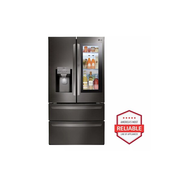 LGfts new 18.6-cu. ft. 4-Door French Door Refrigerator features InstaView Door-in-Door, a tinted glass panel that allows you to see inside the easy-access door without letting the cold air out. You just need to knock on the glass twice to illuminate the contents within. This refrigerator is always print proof. The fingerprint and smudge resistant finish easily wipes clean with a soft, dry cloth for a distinctive kitchen that handles real-life in style. This is another LG appliances that features SmartThinQ as well, to make everything about your experience with this refrigerator as convenient as possible. Each feature of the 4-Door French Door Refrigerator will your kitchen equipped with everything you will need while remaining spacious and convenient