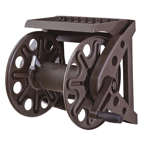Garden Hose Reel, Garden Hoses, Hose Capacity 225 ft (5/8 in I.D.), Minimum Operating Pressure 20 psi, Maximum Operating Pressure 150 psi, Reel Material Resin, Reel Color Bronze, Hose Reel Type Wall Mount Hose Reel, Includes Hose No, Mounting Location Wall, Overall Height 18 in, Overall Length 16 in, Overall Width 24 1/2 in, Includes Gooseneck No, Enclosed No, Swivel Outlet Gender Female, Swivel Outlet Size 3/4 in, Swivel Outlet Thread Size 1/8 in, Swivel Outlet Type GHT
