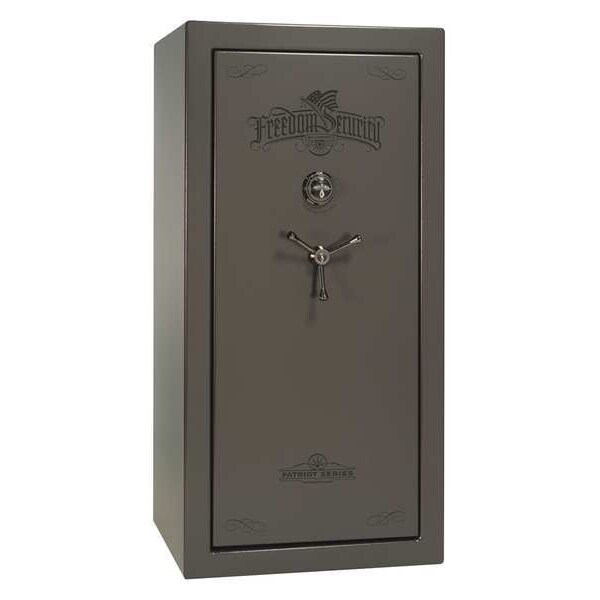 Gun Safe, Color Gray Marble/Black Chrome, Net Weight 605 lb, Fire Rating 1 hr, Water Endurance Not Specified, Material Steel, Finish Gloss, Finger Print Memory 0, Lock Style Combination/Key, 0 Number of Shelves, Number of Bolts 12, Outside Height 60 1/2 in, Outside Width 30 in, Outside Depth 25 in, Inside Height 56 1/2 in, Inside Width 26 in, Inside Depth 14 1/2 in, Door Opening Height 54 1/8 in, Door Opening Width 23 5/8 in, Door Plate Thickness 5mm, Wall Thickness 33.338mm