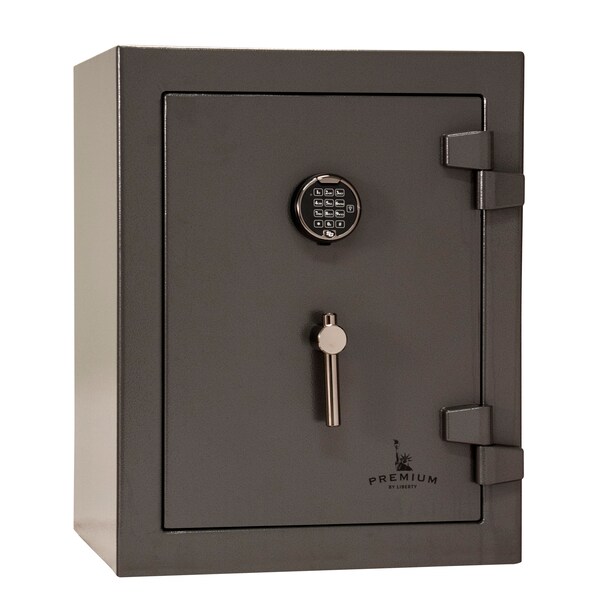 Premium Fire Safe 08, Grey Marble w/Black Chrome Hardware, Silver Velour Interior, 90 Min Fire Rating. Includes Electronic Lock, 4-sided 1.25” Door Bolts, 11-guage steel safe body, 2 Adjustable Shelves, Door Panel.