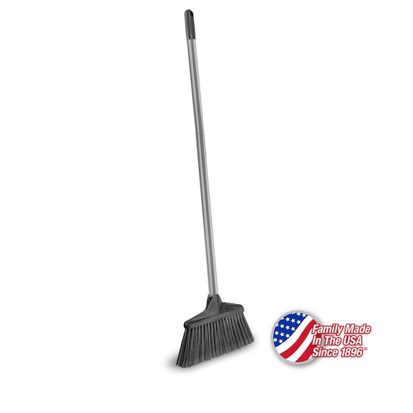 10O wide broom with 54O total height; 3/4O diameter steel handle with handle grip; and hanger hole; 4.25O long staple-set, flagged fibers; Solid, one-piece resin block; Firm but flexible long-lasting fibers, made with recycled PET; Excellent cost-effective option for all multi-surface applications, including hotels The Housekeeper Broom is great for all lighter duty sweeping needs on all surface types, and it is best for sweeping in corners and other hard to sweep areas. This Broom can be used in both wet and dry environments, but it is best for indoor sweeping needs.