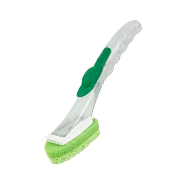 Libman commercial gentle touch foaming dish wand, 6 wands - 1130 features sturdy pvc handle with contoured grip designed to hold any dish soap. cap-free design eliminates leaks. shaped to fit corners. rubber soap-dispensing button lifts to fill soap. non-scratch cellulose sponge with integrated polypropylene scraper.