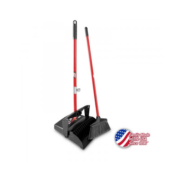 - 12" WIDE DUST PAN. 36" TALL WHEN OPEN. COMBO UNIT WITH #915 LOBBY BROOM. BROOM STORES INSIDE PAN AND CLIPS TO HANDLE. LOCKS IN UPRIGHT POSITION FOR EASY STORAGE. BUILT-IN TILT WHEN OPEN ALLOWS USER TO LEAVE OPEN.