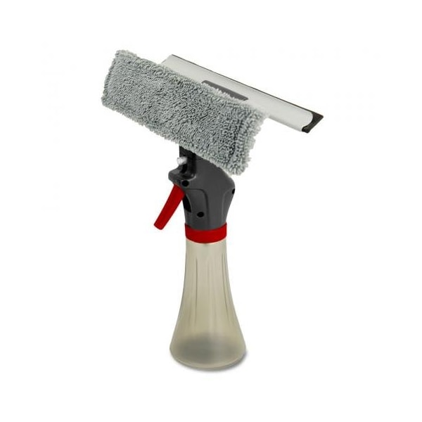 Libman commerical 10" 3-in-1 window squeegee - 1067 - case of 4 the libman 3-1 window squeegee is a combination of a spray bottle, microfiber scrubbing cloth, and squeegee all in one tool. Convenient to use and convenient to store. Light weight and easy to fill the polypropylene molded bottle with cleaner. 10" microfiber scrubber cloth is non-shedding, non-scratching, and machine washable. 10" virgin vulcanized rubber blade helps provide a streak-free shine. Top can be rotated so squeegee is adjacent to spray nozzle.