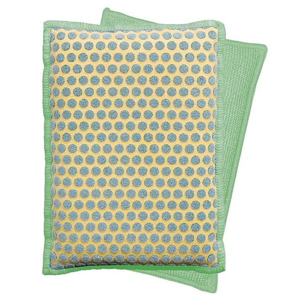 Make cleaning your dishes even easier with the Libman power scrub dots kitchen and bath sponge. The 2-in-1 design removes tough stuck-on food with the powerful scrubbing dots, all without scratching delicate surfaces, while the microfiber surface wipes surfaces clean. Best of all, it rinses clean, without stuck-on food particles.
