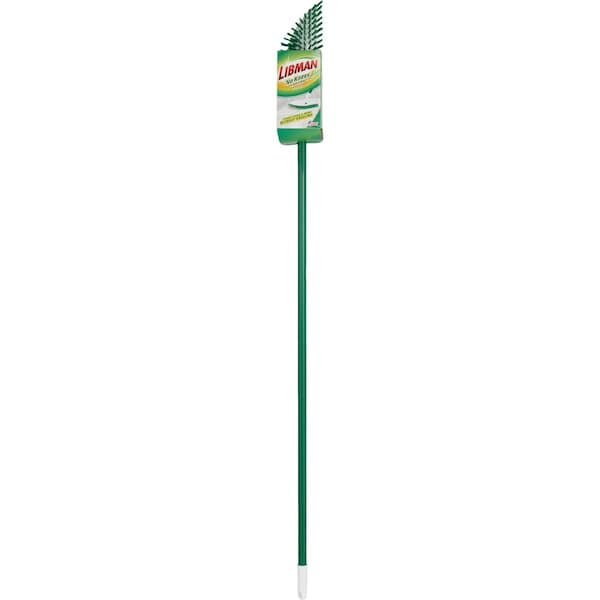 This tough scrubber is attached to a high quality Libman steel handle allowing for floor scrubbing without hurting your knees. The pointed head reaches into corners. The head pivots 180 deg (degrees) making reaching rough spots easy.