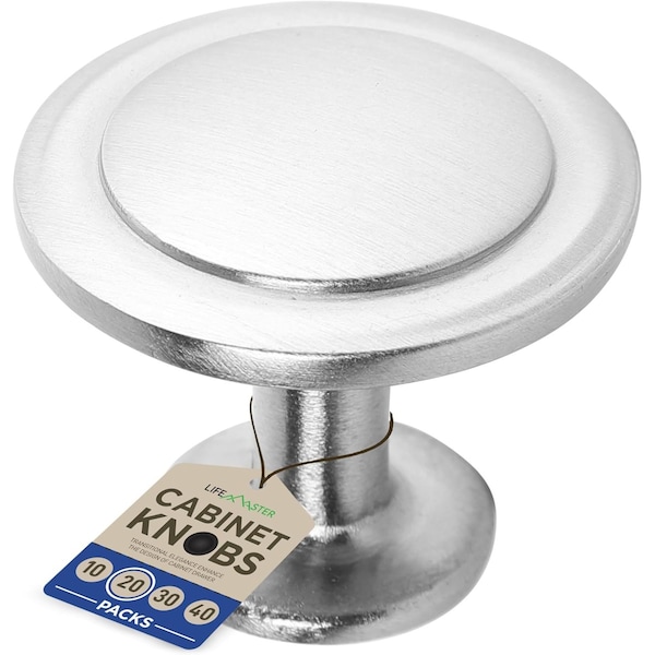 1-1/4in Brushed Nickel Cabinet Knobs, Rust-Proof Zinc Alloy, Adjustable Screws, 20PK
