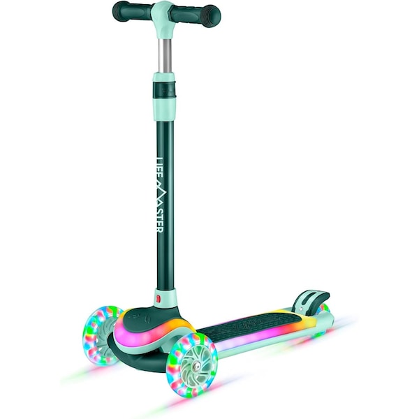 3-Wheel Kids Scooter, LED Deck and Wheels, 5-Height Adjustable Handlebar, Aqua