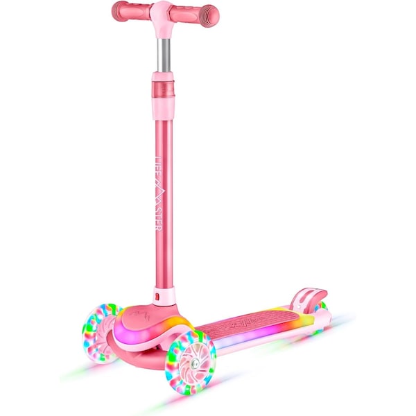 3-Wheel Kids Scooter, LED Deck and Wheels, 5-Height Adjustable Handlebar, Pink