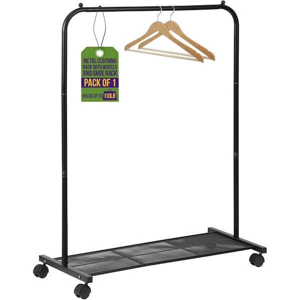 Alloy Steel Clothes Rack, Rolling Garment Rack with Wheels, Black