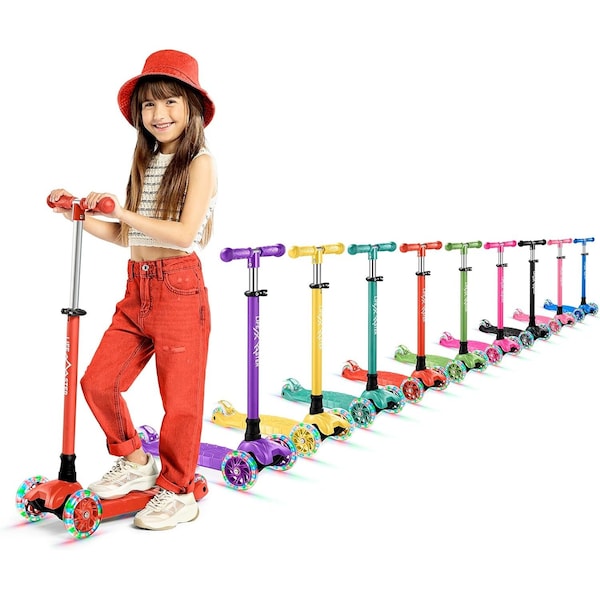 Kids 3-Wheel Scooter with LED Wheels, Adjustable Handlebar, Indoor/Outdoor Red,
