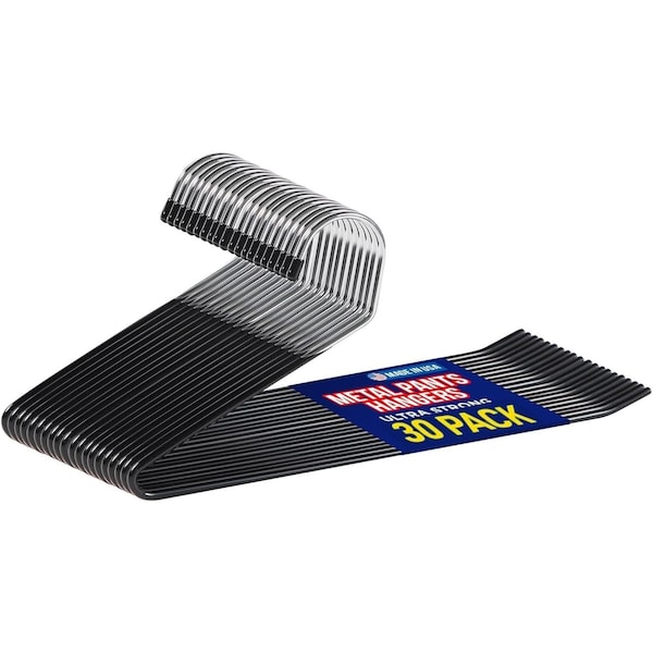 Metal Pants Hanger Set, Non-Slip, Space-Saving, Rubber-Coated, Black, 30PK