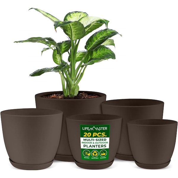 Planter Pots with Drainage Holes, Lightweight, Durable, Space-Saving, Brown, 20PK
