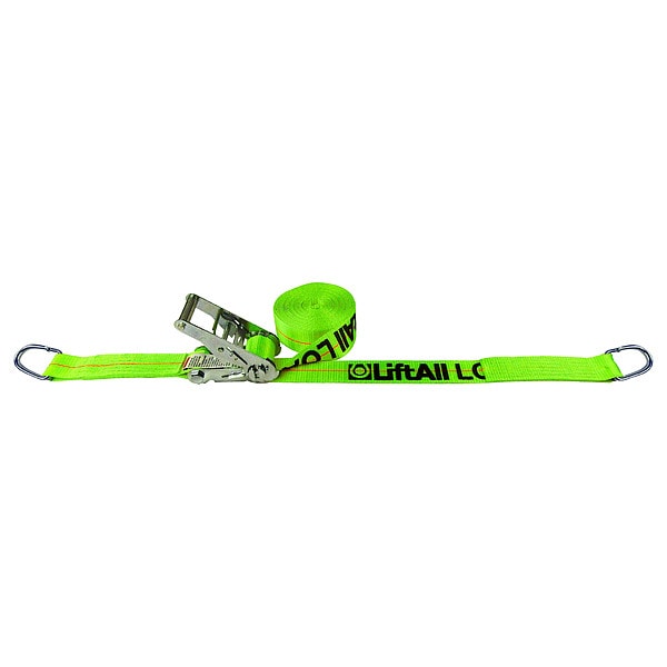 Tie Down Strap, Working Load Limit 1,600 lb, Color High-Visibility Green, End Type D-Ring, Tensile Strength 5,000 lb/in, Tie Down Material Polyester, Overall Width 2 in, Reinforcement Properties Cut-Resistant Edges, Fixed End Length 16 in, Overall Length 30 ft, Standards CVSA, FMCSA, US DOT, Adjustment Type Ratchet, Manufacturers Warranty Length Not Applicable, End Material Steel, Product Type Tie Down Strap