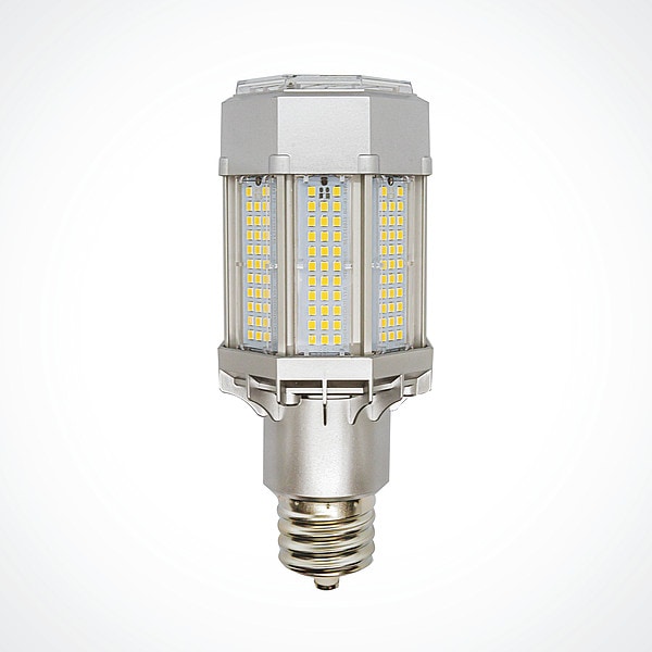 HID Replacement LED Bulb, Bulb Dia. 3 3/8 in, Bulb Shape Cylindrical, Bulb Style Corncob, Color Temperature 3000K, 4000K, 5000K, High Pressure Sodium Wattage Equivalency 175 W, 250 W, 320 W, Lumens 5,140 lm, 8,870 lm, Light Technology LED, Metal Halide Wattage Equivalency 175 W, 250 W, 320 W, Shatter-Resistant Yes, Voltage 120 to 277V AC, Watts 35 W, 45 W, 60 W, Length 7 1/2 in, Bulb Base Type Mogul Screw (EX39), Bulb Housing Metal/Polycarbonate, Color Rendering Index 80
