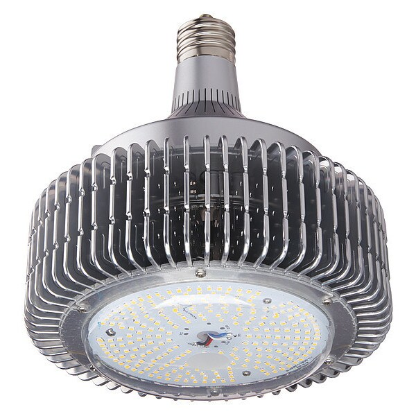 HID Replacement LED Bulb, Bulb Dia. 8 3/4 in, Bulb Shape High/Low Bay, Bulb Style High Bay, Color Temperature 5000K, High Pressure Sodium Wattage Equivalency 250 W, Lumens 11,825 lm, Light Technology LED, Metal Halide Wattage Equivalency 250 W, Shatter-Resistant Yes, Voltage 120 to 277V AC, Watts 90 W, Length 9 1/4 in, Bulb Base Type Mogul Screw (EX39), Bulb Housing Metal/Polycarbonate, Color Rendering Index 80, Fan Cooling Active Cooling, For Enclosed Fixtures Yes, Lumen Selectable No