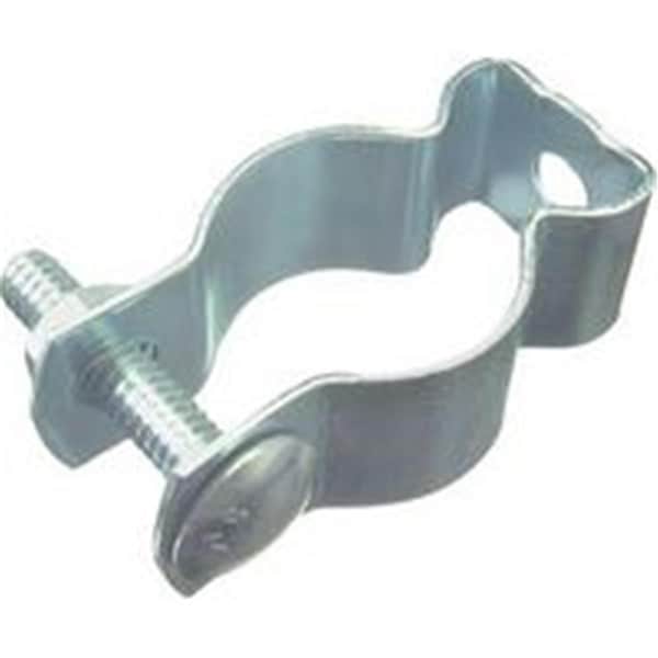 Features -Use to secure and suspend conduit from overhead supports. -Comes with a nut and bolt. -Material - Steel. -Used in Indoors/Outdoors. -Trade Size - 6. -Holds Size - 2-1/2 in.