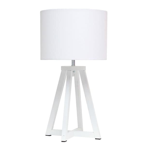 Interlocked Triangular White Wood Table Lamp with White Fabric Shade