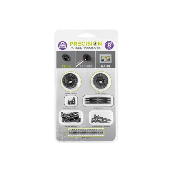Precision Picture Hanging, 8 Picture Kit, 50 LBs Per Anchor, Works With Sawtooth HangersWire HangersPlaques, Picturelock Technology Prevents Crooked Decor With Interlocking Gears