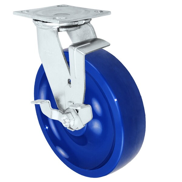 4X2 Swivel Brake Solid Polyurethane Roller Bearing Finish : Zinc Wheel Diameter : 4 Tread Width : 22 Wheel Type : --- Core Detail : --- Wheel Color : Blue Bearing Type : Ball Bearing Fastening Type : Plate Fastening Size : 4 X 4-1/2" Mounting Bolt Diameter : 0.38 Capacity : 800 Mount Height : 5.63